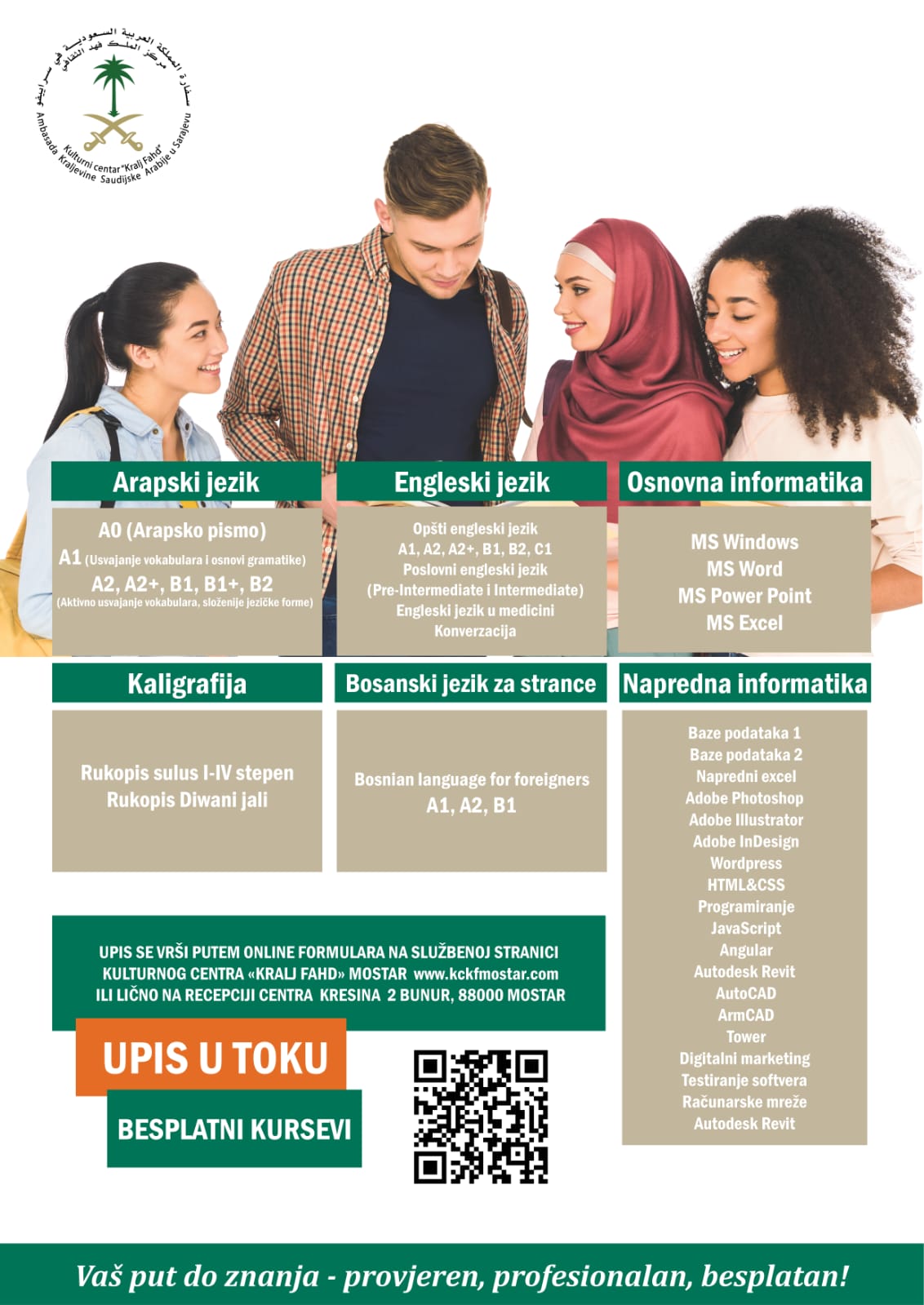 već pohađali kurseve kod nas), potrebno je da se prijavite preko linka:https://kckraljfahd.com/prijava/mostar, odaberite