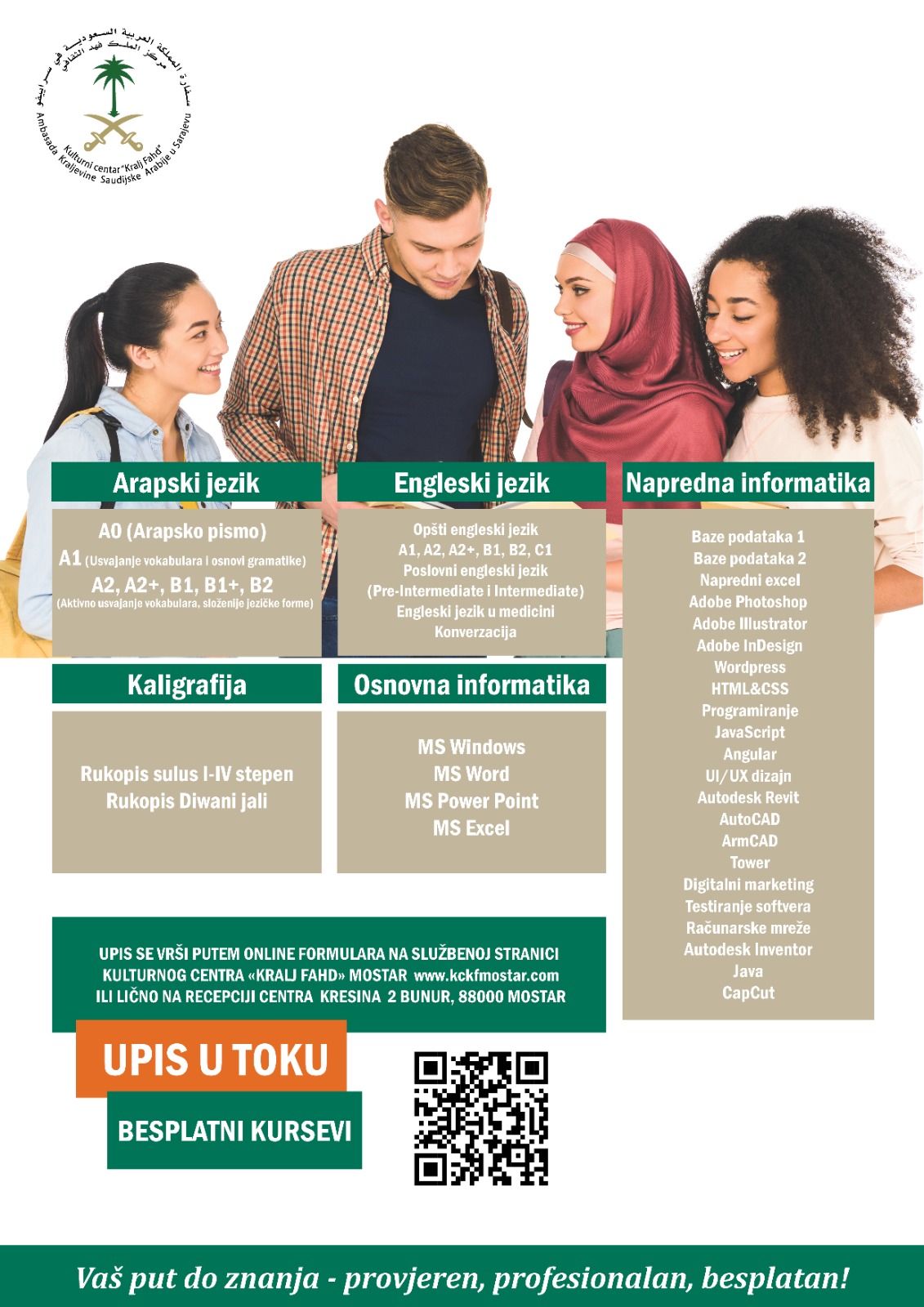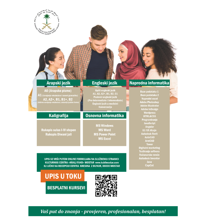 Upis na besplatne certificirane kurseve iz arapskog jezika, engleskog jezika, kaligrafije i informatike za odrasle je u toku!